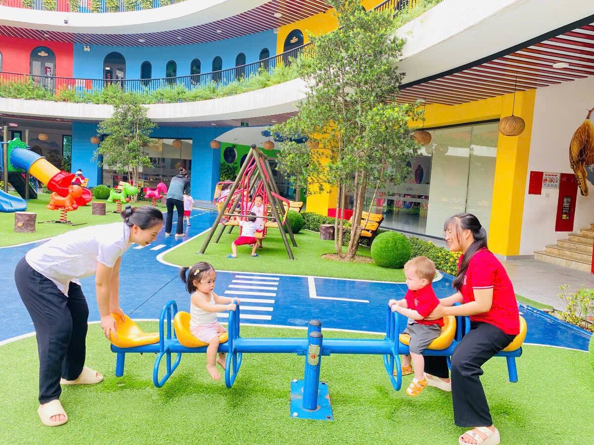 🍀 На занятиях по вьетнамскому и английскому языку дети пока не могут концентрироваться на протяжении всего урока — им больше нравится бегать, играть с игрушками в разных уголках класса и проситься на улицу 🤣