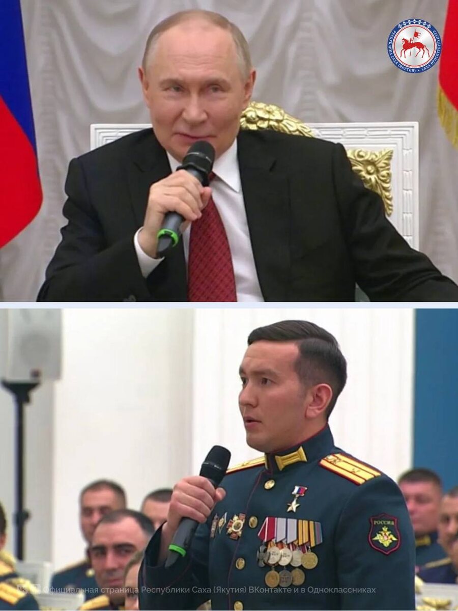 Владимир Путин встретился с участниками образовательной программы «Время героев». В диалоге с Героем России из Якутии Игорем Юргиным Президент России высоко оценил боевое искусство воинов из Республики Саха. 🔹 Игорь Юргин поблагодарил Главу государства за организацию программы «Время Героев» и поддержку бойцов специальной военной операции. «У вас много специалистов по ножам, я так понимаю, по боевому искусству», — сказал Глава государства, сделав отсылку к младшему сержанту Андрею Григорьеву с позывным Тута. 🔹 Как выпускник первого потока, Герой России рассказал о своем участии в программе «Время героев» и об опыте работы в Правительстве Якутии. Его наставником во время стажировки был Глава Якутии Айсен Николаев. Юргин после окончания программы стал и.о. министра по делам молодежи и социальным коммуникациям региона. «Программа для нас, для первого и второго потока, это прежде всего одна большая семья. Это эмоции. Это вера людей. Люди верят в нас. Это внимание для нас дорого стоит
