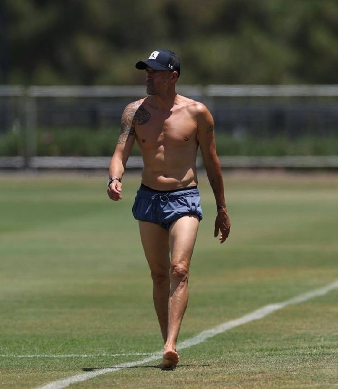 🥵 Кажется, Луис Энрике тяжело переносит жару в США Главный тренер ПСЖ полуголым вышел на тренировку команды на клубном чемпионате мира — 2025. 😍 Стоит отметить, что испанский специалист находится в шикарной форме. @russian_rt_sport