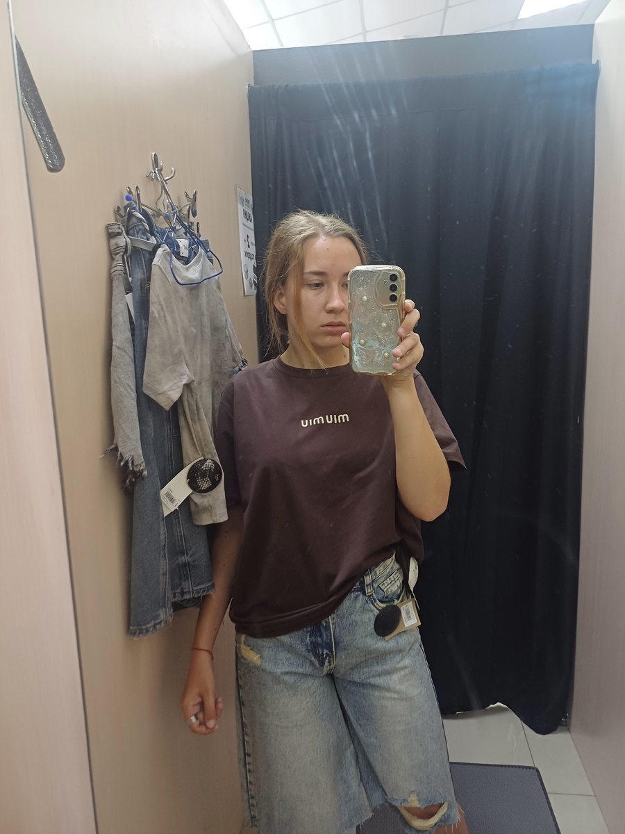 Летом хочется чаще примерять разные образы и составлять новые , но что делать если желание стильно одеваться есть , но твой бютжет этого не может себе позволить?! Я нашла в целом недорогой магазин одежды , такие магазины можно найти в любом городе , там не встретишь брендовые вещи , но можно найти неплохие аналоги. Этой весной и летом в моде шорты широкие бермуды с добавлением карманов в стиле карго.Пройдясь по магазину составила несколько образов сочетая джинсовые шорты с футболками. В этом сезоне многие выбирают длинные шорты , с разрезами внизу, которые прикрывают колено. Выбрала именно длинные шорты и добавила к ним коричневую футболку oversize с надписью на груди. Это сочетание мне понравилось больше остальных. Отличный образ для прогулок с собакой во дворе или поездке к бабушке в деревню.) Также примеряла похожие шорты как и в первый раз , только уже без разрезов и джинсовая ткань более темная, дополнила образ укороченной серой футболкой. В таком образе вполне можно пойти в маг