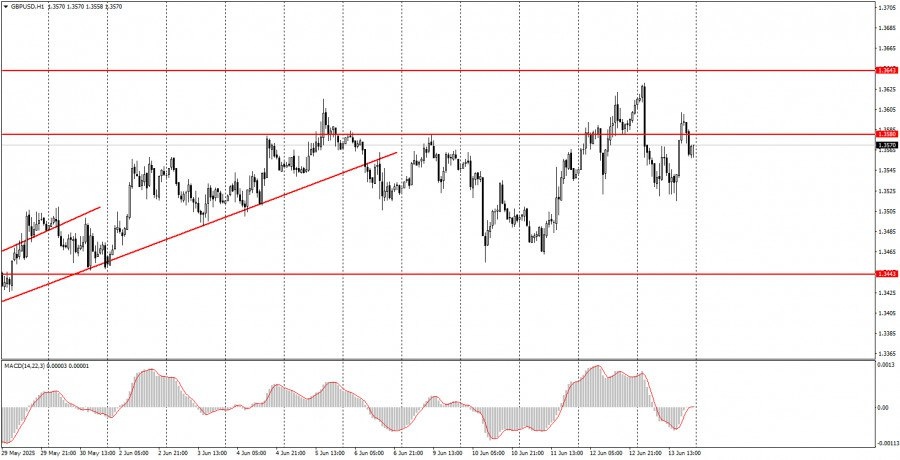 https://basechop.ru/wordpress/?p=46331 Разбор сделок пятницы: 1Н график пары GBP/USD. Пара GBP/USD в пятницу показала практически идентичные движения с парой EUR/USD. Потому что ключевые факторы были такими же. Ночная атака Израиля на Иран спровоцировала сильное укрепление доллара, которое очень быстро закончилось, так как трейдеры вспомнили о том, что не геополитика на Ближнем Востоке стоит сейчас на первом месте. Единственный отчет по настроению потребителей в США от университета Мичиган оказался гораздо сильнее прогнозов, но при этом никакой поддержки доллару не оказал. Трамп вновь наводит шуму во всем мире, на этот раз на Ближнем Востоке. Хотя официально Америка непричастна к атаке Ирана, однако последующие заявления Трампа говорят о том, что он, как минимум, был в курсе. Трамп требует от Ирана отказа от обогащения урана и производства ядерных ракет. Тегеран не принимает эти условия. Что дальше? Начнется полномасштабная война? Но Трамп же вроде хотел завершить все войны на планет