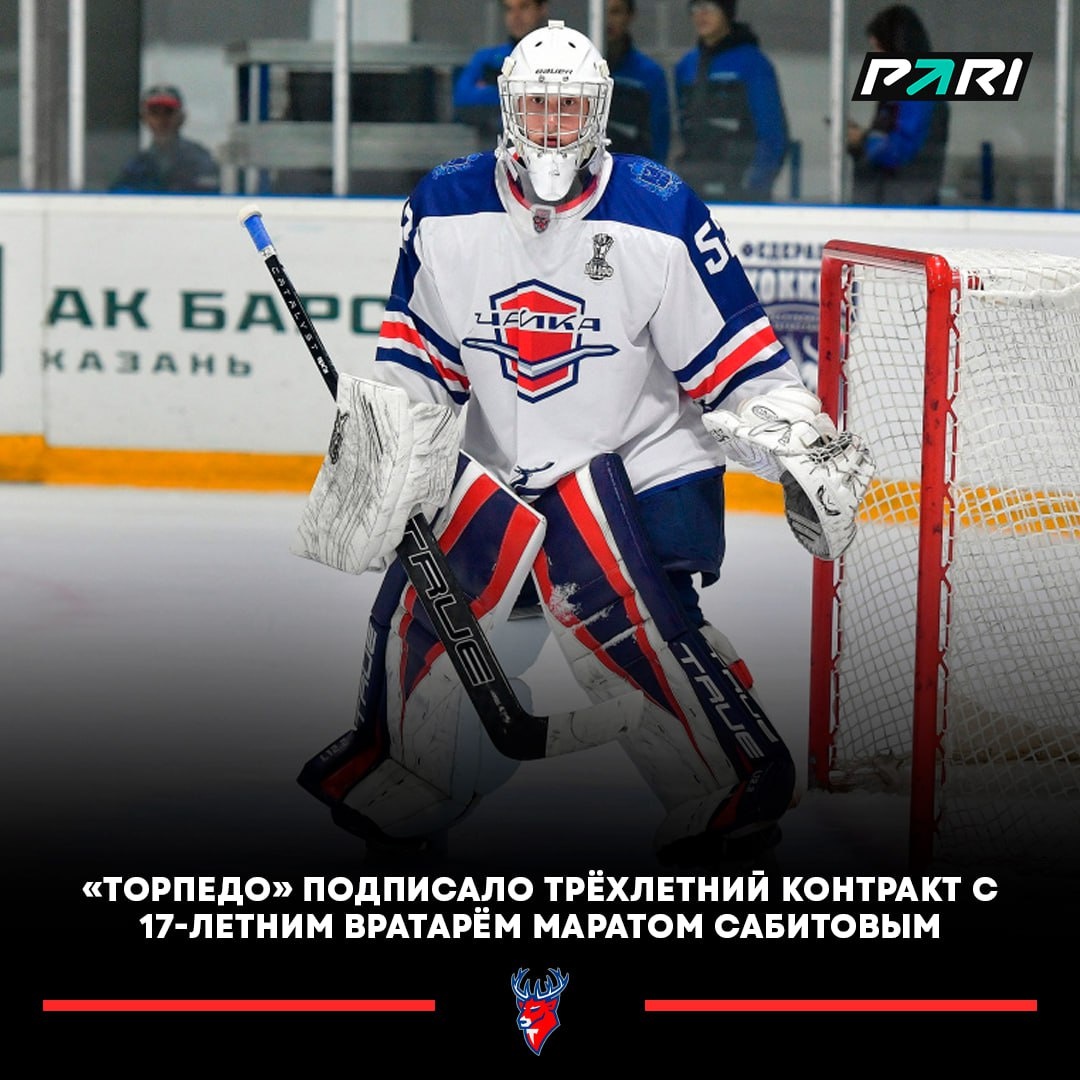 🔥🇷🇺 «Торпедо» объявило о подписании 17-летнего голкипера Марата Сабитова. ✍️ Трёхстороннее соглашение игрока с клубом рассчитано на три года. 📊 В дебютном сезоне МХЛ Сабитов провёл 40 матчей за «Чайку» с 92,4% отражённых бросков, заработав коэффициент надежности 2,40. В четвертьфинале Кубка Харламова голкипер был признан лучшим по проценту отражённых бросков (97,1%) и вошёл в символическую сборную лиги.