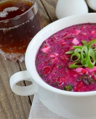 Это блюдо подается холодным, его по достоинству оценят любители окрошки и прочих холодных супов. Квас понадобится хлебный, с ним получается свекольник вкуснее всего! Ингредиенты: Свежий огурец 2-3 штук Сметана По вкусу Яйцо вареное 2 штуки Соль По вкусу Сахар 1 ст. ложка Перец черный молотый По вкусу Уксус столовый 9% 1 ст. ложка Хлебный квас 1 литр Молодая свекла с ботвой 2 штуки Зеленый лук, укроп, петрушка 1 пучок Подготовьте продукты для свекольника. Отварите яйца вкрутую. У свеклы отрежте ботву, ее выбрасывать не нужно, она пригодится. Саму же свеклу очистите от кожуры, вымойте и натрите на крупной терке. Сложите в кастрюлю, залейте 100 мл воды и добавьте уксус. Тушите на слабом огне 20 минут. Свекольную ботву вымойте, порежьте некрупно и добавьте к тушеной свекле. Протомите еще 10 минут под крышкой. Готовую свеклу с ботвой нужно полностью остудить. Огурцы и яйца порежьте кубиками, добавьте к свекле. Добавьте большое количество рубленой зелени: укроп, петрушка, зеленый лук. Заверш