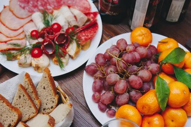 Обычно существует несколько тарифных пакетов. Например, вариант "Welcome-фуршет" на 60 человек включает деликатные холодные закуски, нарезки, мини-десерты и фрукты — от ассорти эклеров до канапе с ростбифом, а итоговая цена — 79 080 рублей. Тариф "Премиум" отличается более широким выбором угощений: к традиционным закускам добавляются мини-бургеры, рыбный шашлык, авторские коктейли и изысканные напитки. Более камерный вариант "VIP-фуршет" предполагает праздничные горячие блюда, например, плов с бараниной, свежие овощи и домашние разносолы, а стоимость услуги для 15 гостей может достигать 122 380 рублей.