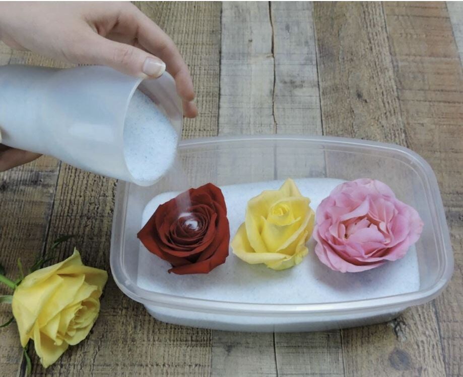 Сушка цветов в силикагеле — лучший способ сохранить их яркость и форму. Этот метод особенно хорош для нежных бутонов (роз, пионов, анютиных глазок), которые при обычной сушке теряют лепестки. Важно! Не используйте пищевой силикагель с добавками (например, из обувных коробок) — он может оставить пятна. ✅ Идеально: розы, пионы, гвоздики, анютины глазки, маргаритки, фиалки.