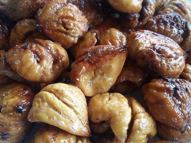 Жареные каштаны Их можно подавать как десерт с гоголь-моголем или ванильным мороженым или просто солеными в качестве закуски. 🍴 Количество: 0.2 кг. Ингредиенты ✅ ¼ кг каштанов ✅ ¼ стакана сливочного масла ✅ соль по вкусу ✅ 1 щепотка молотой корицы Инструкция приготовления 1. Разогрейте духовку до 190 градусов C 2. На плоской стороне каждого ореха сделайте крестообразный надрез длиной 1/5.00 см. Положите орехи в неглубокий противень и запекайте 25-30 минут. 3. Дайте остыть и очистите от скорлупы. 4. Положите орехи в сковороду с маслом и жарьте на сильном огне, пока масло не растопится и каштаны не будут покрыты. Поставьте сковороду в духовку и запекайте до золотистого цвета. Посыпьте солью и корицей. 📷 https://furshett.ru/uploads/zakuski-i-sneki/e4f2f4a3-c7ad-40ff-b75b-4471406b4985.jpg 👌 Больше рецептов на Furshett.ru 👉 https://furshett.ru/zakuski-i-sneki/jarenye-kashtany-57507