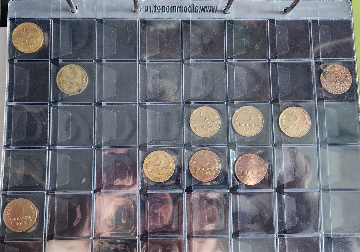 Коллекция 3-копеечных монет из алюминиевой бронзы 1937-1957 гг. (10 из 41)