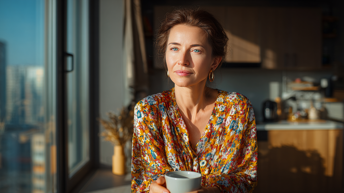 Оксана сидела на кухне в старом домашнем халате с цветочным принтом, потягивая ароматный кофе и наслаждаясь редкой тишиной в квартире. За окном моросил осенний дождь, стекая по стеклу мелкими дорожками. На столе лежал раскрытый ноутбук — она планировала поработать над проектом в спокойной обстановке, без отвлечений и суеты.