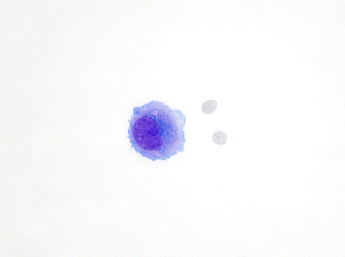 Спинномозговая жидкость с метастатической карциномой молочной железы от пациентки с известной первичной опухолью.