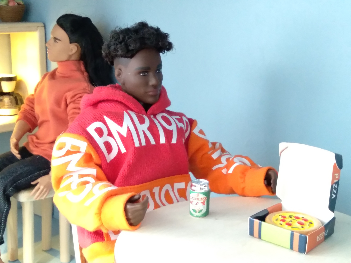 Итак, в Барбейском доме повился новый кандидат на выселение. Это Кен лукс 25, афрокачок, живущий у меня под именем Эйо. Две предыдущие куклы, которые были кандидатками на выселение (Танго и Симона), остались в итоге у меня. У Танго (Кику) появилась собственная история. Симону (Анук) вместе с Эль (Шани) я отсадила из домика, пока будут просто жить отдельно. Может, впишутся в историю, может, и нет. Кстати, надо это место ещё для них найти... Итак, афрокачок. Он заехал ко мне в феврале. Сразу встал в пару с Зури (Кло бмр)... и все. С тех пор или лежит на диване, или сидит рядом со своей подружкой. По легенде, он приехал вслед за Зури. Но, она учится в университете и мечтает открыть свое кафе в африканском стиле. А он лежит на диване, иногда помогает Тео в мастерской. И все! Почти ни с кем не общается. Зачем приехал, непонятно. В общем, я его не понимаю(( Кстати, на фото он выглядит другим, не таким, как в жизни. В жизни он тихий и какой-то потерянный. В общем, не знаю, что с ним делать.