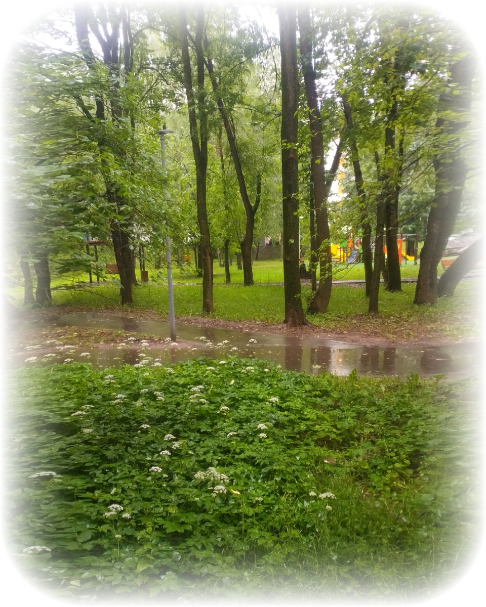 Выглядываю я в окно через щелку в жалюзи и вижу это... Да, ничего такого, летний пейзаж, но мне белые зонтики показались кучками снега ❄️❄️❄️
