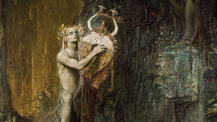 Хода к Аиду не зная, бродил он примерно полгода, Но ведь не даром считался он музыкантом "зе бест"! Слыша Орфеевы вопли, рыдала природа - Местная публика, нимфы и звери окрест. Так и добрёл до границ ПелопоннЕса, Сел отдохнуть у пещеры какой-то руин. И стал распевать как ему до зараза Нужен для входа под землю пароль и логин. Чернью ужасною вдруг поднебесные хляби Разверзлись. Словно раззявив в оскале пугающем рот. Видит Орфей сквозь всполохи молний и ряби, Чёрного чЕрне, зияет под землю проход... Словно в прострации, как в гипотетическом трансе, Он соскользнул в ту бездонную жуткую щель. Ну а снаружи ливень с грозою унялся, Мрак беспросветный сменила опять акварель... Продолжение следует...