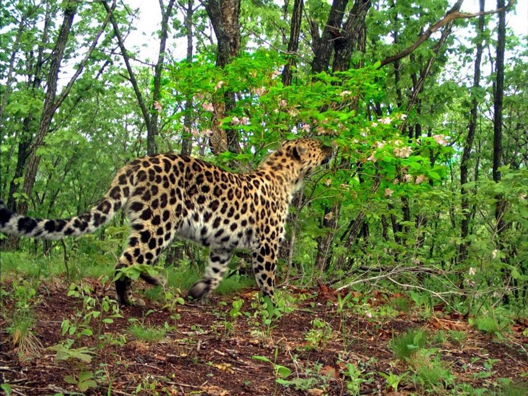 Как же чудесно пахнет этот ваш лес! 🐆 Своё утро дальневосточный леопард Leo 28M по имени Репортёр начал с изучения флоры «Земли леопарда». Возможно, выбирает цветы для дамы сердца. Интересно, что инициатором ухаживаний всегда выступает самка. Обычно встреча леопардов длится всего несколько дней, а после короткой супружеской жизни влюблённые быстро теряют друг к другу интерес. В остальное время дальневосточные леопарды — интроверты, и компания им не нужна. Если только это не самка с котятами. 🐆 Здесь «Земля леопарда»