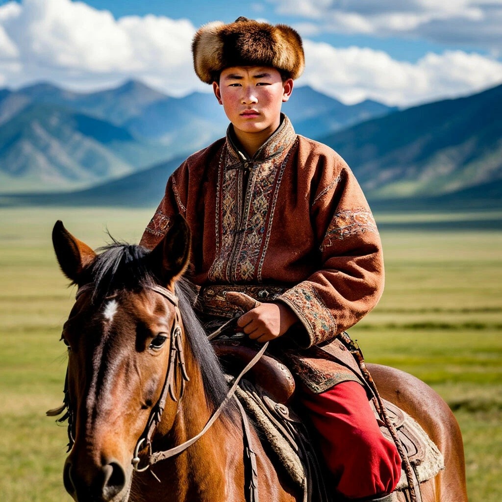 В бескрайних степях Халхи, где небо касается земли, а ветер поет песни предков, жил юный всадник по имени Арван. Конь его был быстр, как стрела, взгляд – остёр, как клинок, а сердце горело огнем, не ведающим тени. Однажды, гоня облака на спине своего скакуна, Арван увидел стаю журавлей, улетающих за синий горизонт. Им не было дела до седин или усталости. Они просто были – вечные в своей грации. "Почему они?" – подумал Арван, и семя жажды упало в его душу. Жажды не стареть, не знать немощи, вечно скакать под куполом Вечного Синего Неба – Тэнгри. Он бросил вызов самой судьбе. Спросил у древнего шамана, хранителя родовых знаний. Тот, костяные подвески на его одежде зашелестели, как сухие листья: "Сын мой, ищи Источник Молодости там, где восходит солнце над горами Алтая. Но помни: то, что дано духом ветра, не удержишь в кулаке из плоти". Арван скакал тридцать дней и тридцать ночей. Пересёк пески Гоби, где солнце выжигает память, взошёл на заснеженные пики, где воздух режет легкие. Он