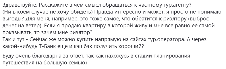 Я тогда не была турагентом, помогала просто по-дружески и как частное лицо на сайте агрегатора.