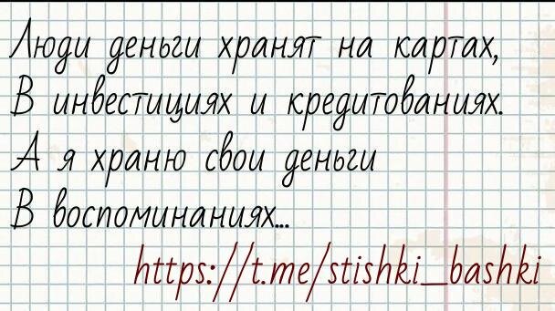 Про финансы #деньгидребеденьги #стишкиизбашки Стишок каждый день для настроения @stishki_bashki 📹 - видеостишки тут 👈 🙊 - а тут можно комментировать 👈 Поделитесь стишком с друзьями