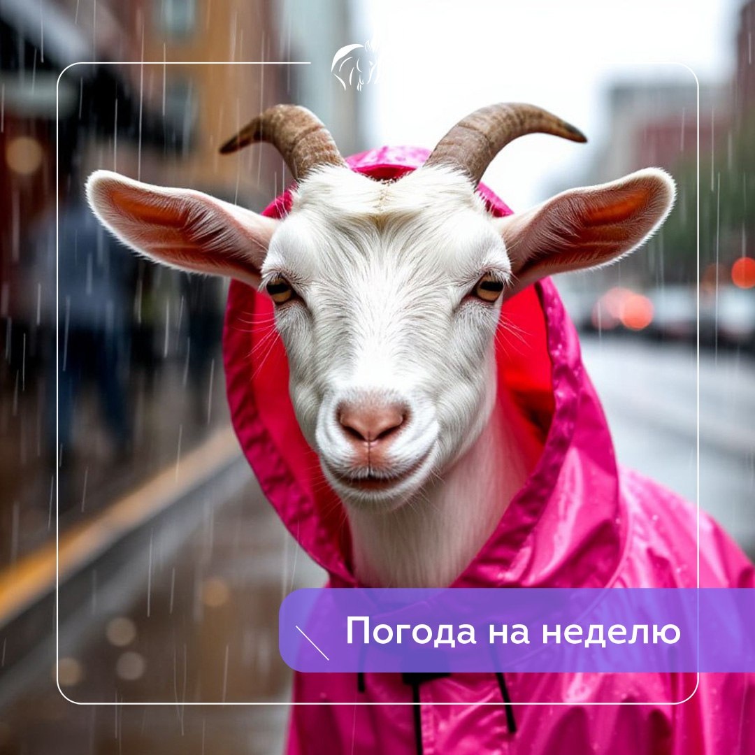 Погода на неделю 🌬☁️ Коза уже посмотрела прогноз погоды и морально подготовилась к дождливой июньской неделе По прогнозам синоптиков средняя температура составит +22 градуса днем и + 13 градусов ночью. Порывы ветра будут достигать 3 м/с. В четверг и пятницу возможны грозы! ⚡️ ✅ Подписаться на Козу и Стерлядь