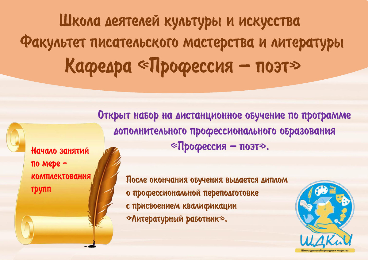 Открыт набор на дистанционное обучение по программе дополнительного профессионального образования «Профессия — поэт».