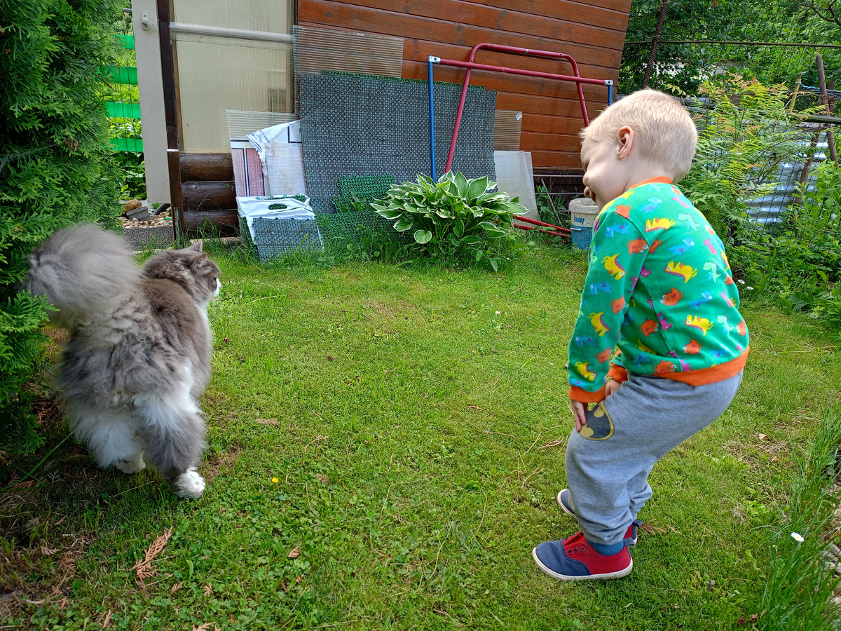 Уже прошла неделя, а я всё пишу вам про второй наш дачный заезд. Уже ничего не помню, но спасибо фотографиям в телефоне - по ним можно воссоздать картину тех денёчков. Хоть было их всего три. Еще спасибо ТГ-каналу, там можно бвстренько описáть события в реальном времени😄 Среда был крайним рабочим днём перед четырехдневными выходными. Но наша соседка по участку, видимо, уже не работала, потому что весь день провела на грядках. Это мальчишек очень обрадовало и они с самого утра пошли помогать (читайте -надоедать) тёте Ире. Хоть она и говорит, что они не мешают, но все-таки мы их с дедушкой гоним обратно на свой участок. Похоже, что у неё они перенимают огородные премудрости. Она воспитатель с большим стажем, им очень интересно её слушать, стоя рядом, когда она занимается огородом. Марсель кучу вопросов задаёт, точнее вопрос то один, но эта цепочка «а зачем?» часто заводит в тупик. В первой половине дня обычно мальчики сами себя развлекают. Конечно, не без присмотра! Полив всего, что