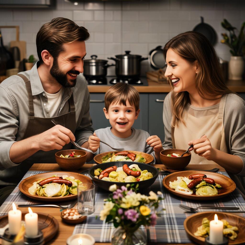 Ах, сколько теплых воспоминаний хранит наша память о тихих семейных вечерах за столом! Именно эти моменты создают особую атмосферу уюта и комфорта дома. В такую пору так приятно согреть душу ароматным блюдом, которое буквально источает тепло и доброту. Одним из таких кулинарных шедевров является простая, но безумно вкусная тушеная капуста со свежеподжаренными сосисками. Представьте себе картину: поздним вечером, когда дом уже окутан мягким светом ламп, вся семья собирается вокруг большого деревянного стола. На нем стоит аппетитное блюдо, от которого исходит чудесный запах свежей капусты, обжаренных специй и томленых овощей. Маленькие кусочки колбаски прячутся между слоями нежного овоща, словно играя в прятки, ожидая своего часа, чтобы подарить каждому кусочек удовольствия и наслаждения вкусом. Рецепт приготовления Ингредиенты - Кочанная капуста среднего размера (примерно 1 кг) - Сосиски по вкусу (от 4 до 6 штук) - Репчатый лук - 2 шт. - Морковь - 1 шт. - Растительное масло - около