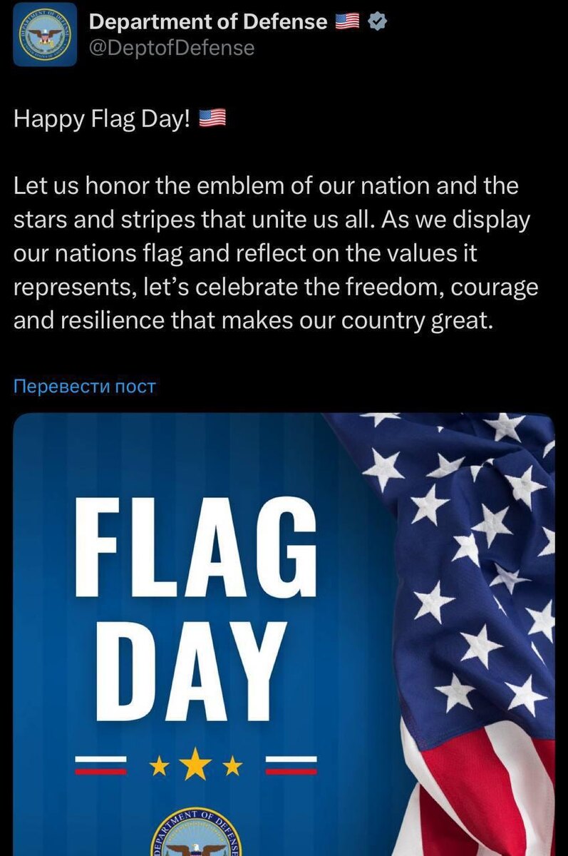Пентагон с помощью российского триколора поздравил амерканцев с Днем флага США.