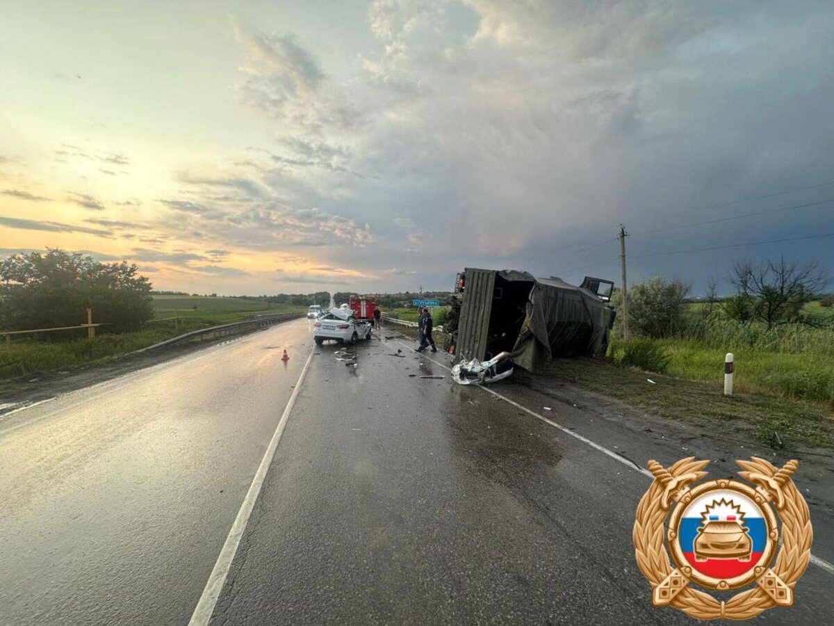 14.06.2025 в 18 часов 42 минуты 8 км+ 970 м. автодороги М-4 "Дон" - Каменоломни, Октябрьского района, водитель автомобиля "Камаз 53501" 1980 года рождения, по предварительным данным, не выбрал безопасную скорость движения, не справился с управлением, выехал на полосу встречного движения и допустил столкновение с автомобилем "Лада Веста", под управлением водителя 1976 года рождения, после чего автомобиль "Камаз" допустил наезд отбойный брус ограждения дороги с последующим опрокидыванием автомобиля. В результате ДТП водитель автомобиля "Лада Веста" получил травмы и доставлен в медицинское учреждение. Полицейские устанавливают все обстоятельства произошедшего. 👉🏻Новости №1 в Ростове 💌Прислать новость/фото