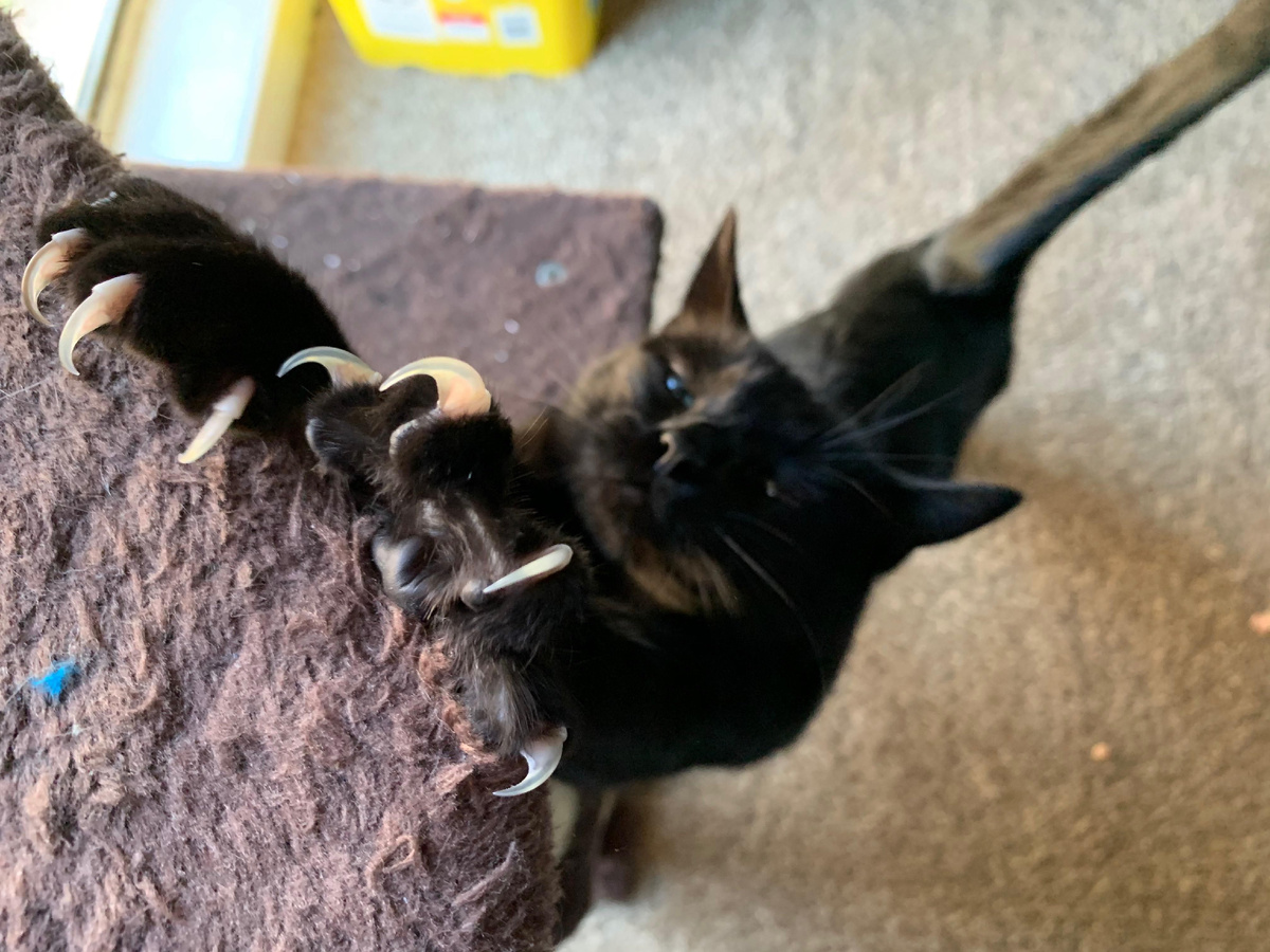Старые кошки или кошки с артритом, неврологическими проблемами или ожирением становятся менее подвижными. Они хуже точат когти и могут чаще за них цепляться. Когти у них часто становятся толще и ломкими.