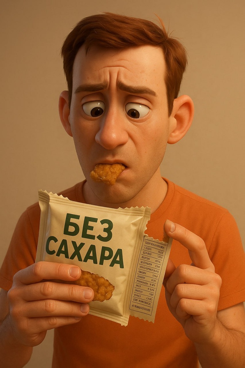 Ты стоишь у полки, сканируешь упаковки глазами — и вот оно: “Без сахара”. Сердце радуется, совесть хлопает в ладоши, фигура выдыхает. Берёшь. Покупаешь. Ешь. А потом изучаешь состав — и там: – фруктоза – сироп агавы – концентрированный виноградный сок – патока – мёд – “натуральные подсластители” И только самого сахара… действительно нет. 🤡 🧠 Это называется маркетинговая игра в прятки. Когда пишут “без сахара”, но подразумевают “мы назвали его по-другому, и теперь ты спокоен”. – Мозг видит "без" и расслабляется — “значит, это ЗОЖ” – Этикетка = обещание, и никто не читает дальше – “Мёд — это полезно” — ну как же, бабушка лечила! – Сироп агавы звучит как что-то ботаническое и диетическое (спойлер: по гликемическому индексу он обгоняет сахар на повороте) – Печенье “без сахара” с яблочным сиропом — которого по калориям больше, чем в сахарном – Батончик “для диабетиков” — на финиках и бананах. Уровень сахара в крови: взлетает как SpaceX – Йогурт “фитнес” — 0% жира, зато полный набор сладки
