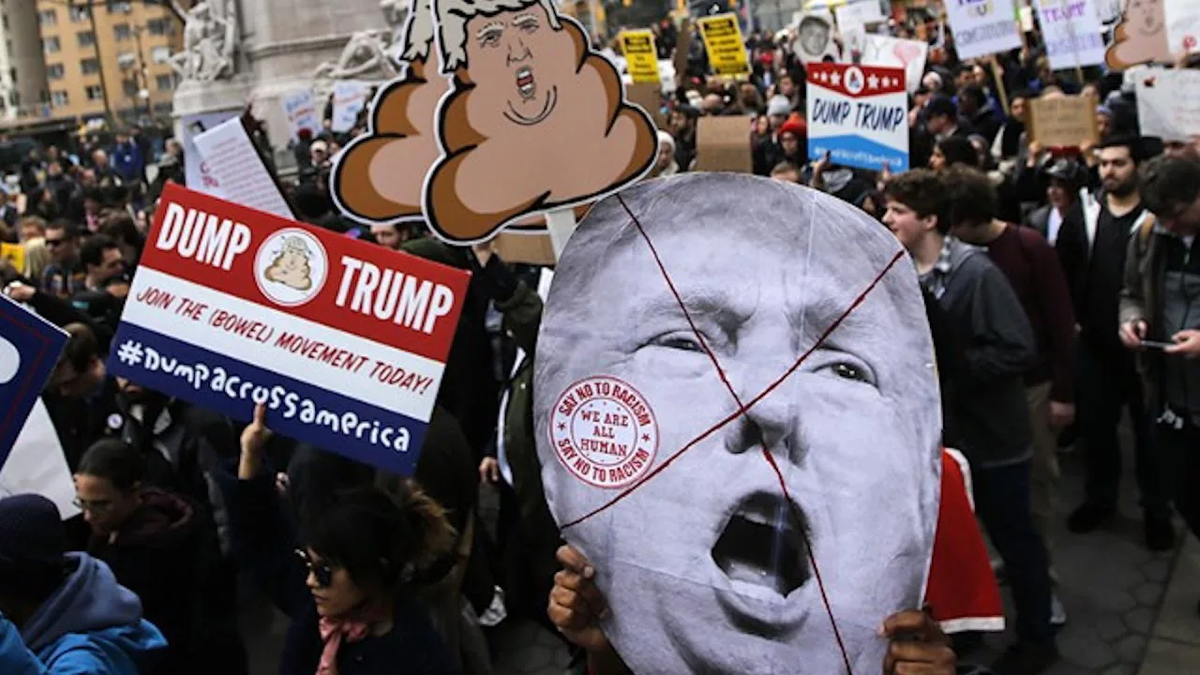 Протестующие провели демонстрации примерно в 2000 местах по всей стране в день, когда президент США проводил военный парад в Вашингтоне