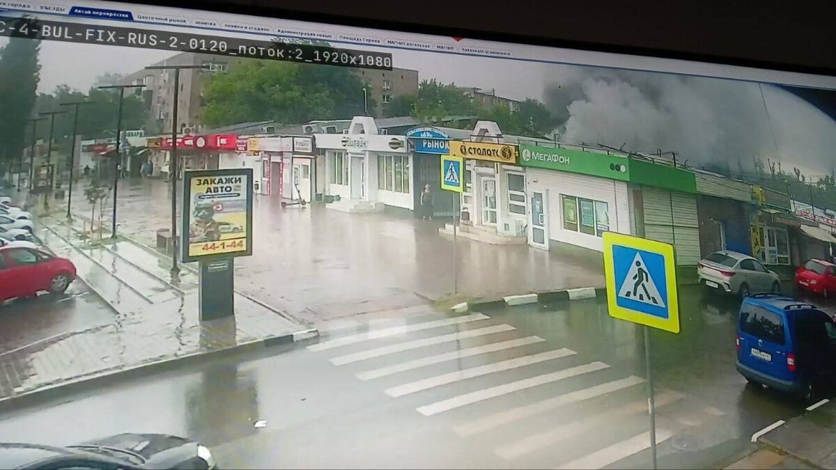 🔥 Рынок горит в Аксае прямо в проливной дождь. Пожарные уже на месте.