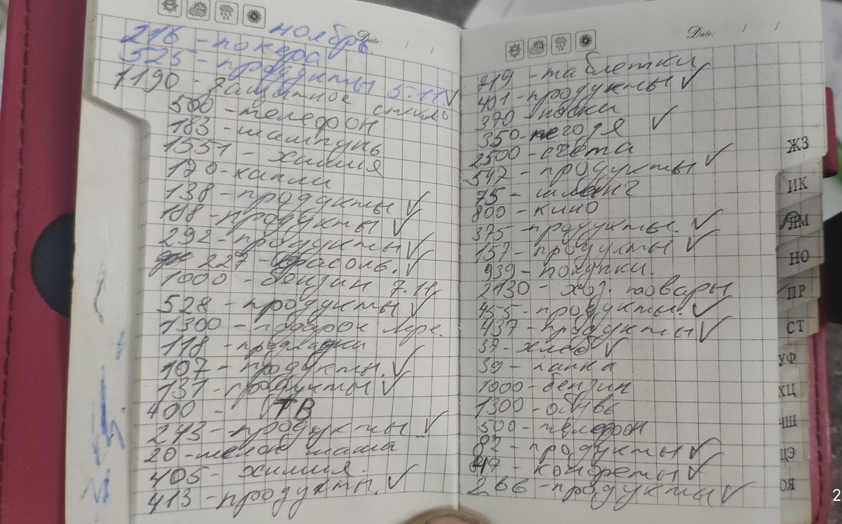 Мне было этого мало и я решил, что буду записывать все наши с женой траты. И весь 2016 год фиксировал абсолютно всё, куда уходили и откуда приходили деньги. Этот блокнот я до сих пор храню, как начало моего опыта в планировании.