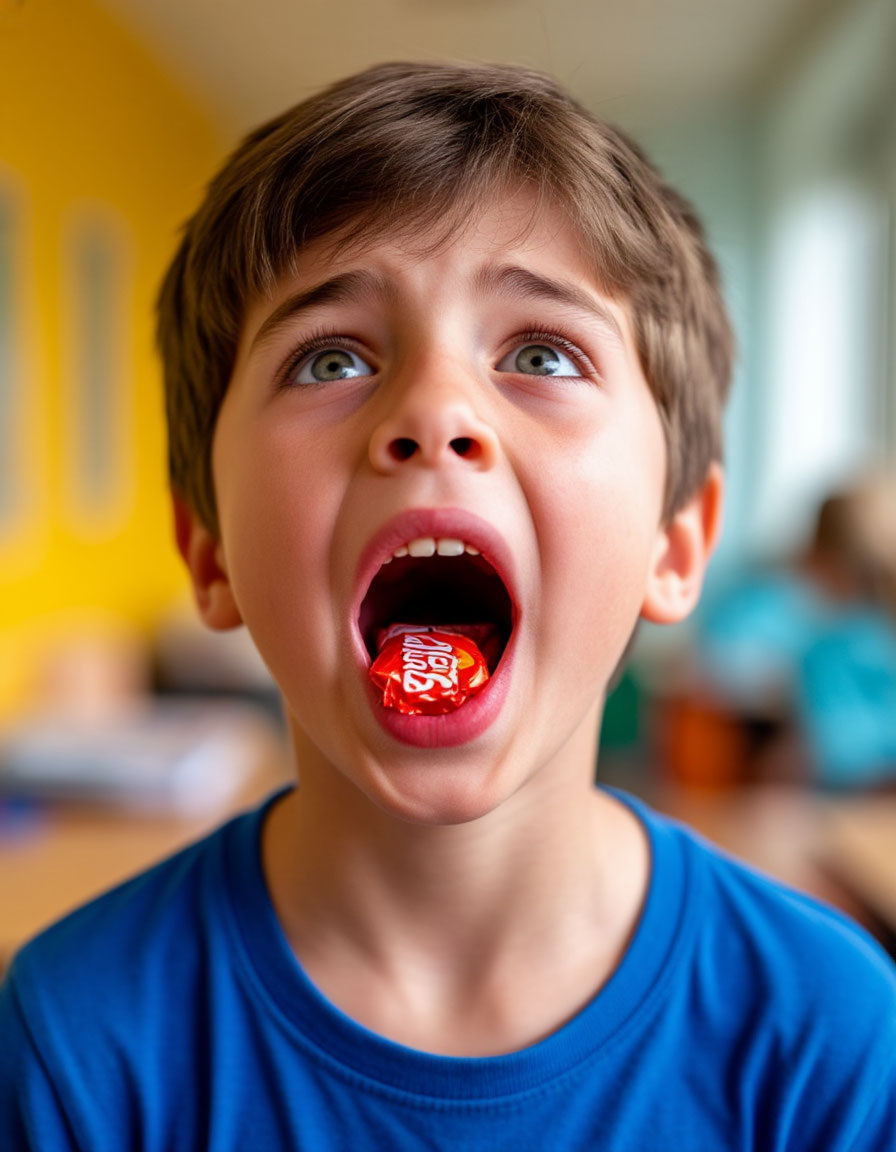 Это случилось совершенно неожиданно — именно тогда, когда никто этого совсем не ожидал. Я стоял на школьном дворе вместе с одноклассниками на очередной торжественной линейке, посвящённой Дню Знаний. Было солнечно, тепло и весело, настроение было приподнятым, ведь впереди ждали уроки, новые знания и весёлые перемены. Однако всё изменилось мгновенно, когда кто-то из ребят решил угостить меня конфеткой прямо перед началом линейки. Отказываться было неудобно, да и сладкое мне нравилось, поэтому я принял угощение и тут же отправил её в рот. Шоколадная конфета оказалась удивительно вкусной, и я начал быстро её разжевывать, одновременно слушая речь директора школы и наблюдая за своими друзьями. Но вдруг произошло нечто непредвиденное: конфетка словно бы застряла поперёк горла. Сначала я почувствовал лёгкий дискомфорт, потом стало трудно дышать, а вскоре дыхание почти прекратилось вовсе. Паника начала охватывать меня изнутри: глаза начали слезиться, лицо покраснело, сердце бешено колотилось в