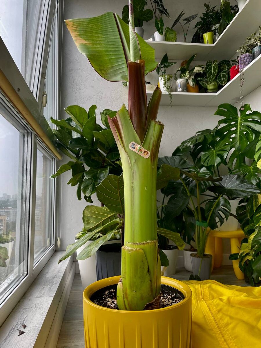 Грустная история одного банана. 👩 Это не банановые листья , а соломенная шляпа. Подумала я, когда вернулась домой после недельного отпуска на даче… по понятным причинам даже фоткать не стала, даже всплакнула немножко. ☝ Стояла лютая жарища, увлажнитель не включался из-за интернетовых помех, кондиционер тоже включался с перебоями, поэтому балкончик превратился в сухой крематорий. 😳 За эту неделю бананьи листья высохли в в тряпки просто… 🤓срезала, дабы не травмировать свои глаза и не рыдать каждый раз, смотря на свой любимый крупномер. Сын сделал все, что мог, чтобы помочь банану и с прискорбием наклеил пластырь на мамин цветочек🤓 Теперь наладим условия и будем ждать новой шевелюры! Как Вы спасаете свою ботву от перегрева на время отъезда? Делитесь? Ато у меня в этом году все страдают из-за глушилок(