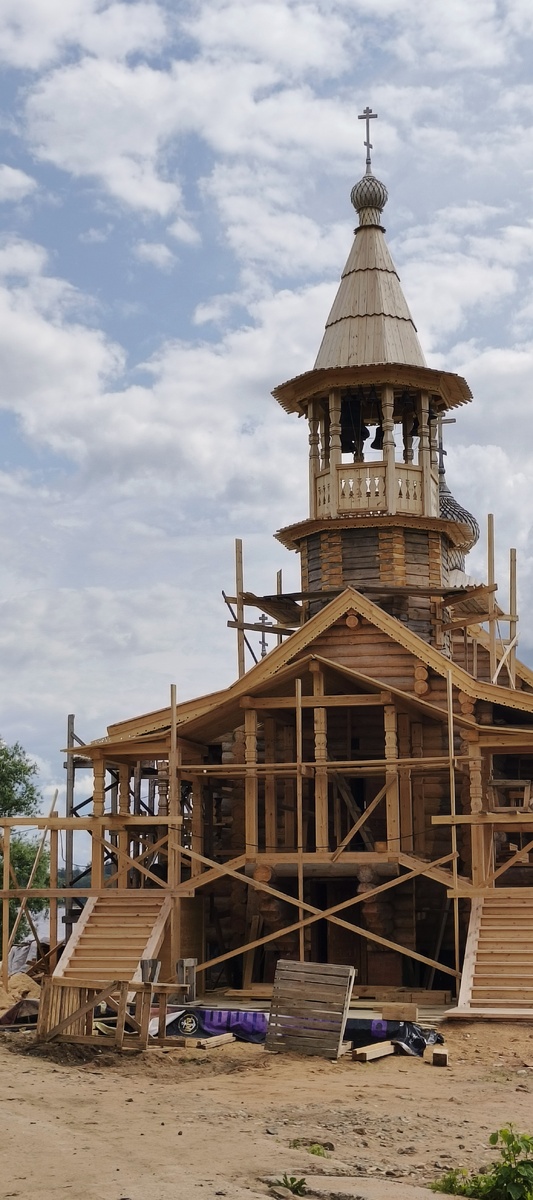 Оказывается привлекать внимание туристов и просто горожан могут не только законченные памятники и здания, но даже и стройки. Я думала не так много желающих, таких как я, кто интересуется таким, а оказывается очень даже много! Пока фотографировала несколько человек подошли полюбопытствовать как идет строительство и запечатлеться с новой достопримечательностью Костромы. Никого не смутили строительные леса и незаконченность благоустройства. В Костроме возводят деревянный храм Рождества Пресвятой Богородицы на берегу реки Волга недалеко от деревообрабатывающего предприятия "Свеза", что по адресу ул. Комсомольская, д. 13. Пока у храма даже видимо нет своего адреса, так как ни одна карта его не выдает. Почему здесь решили строить? Потому что в 17 веке на этом месте уже была церковь. Рядом с церковью поставили фигуру Андрея Первозванного. Кстати все тут сооружаемое можно увидеть даже со стороны знаменитого Ипатьевского монастыря, который находится по ту сторону реки Кострома. Познавательна