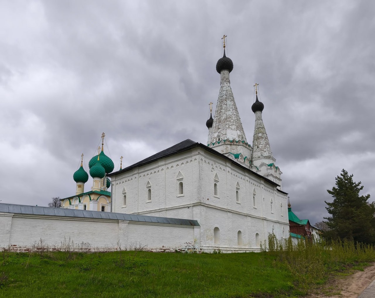 Алексеевский женский монастырь основан в Угличе в 1371 году с разрешения князя Дмитрия Донского. Зданий того времени не сохранилось, но зато издалека видна Успенская церковь. Она же Дивная. Цепляет глаз сразу же - из-за трёх шатровых куполов, образующих как бы корону о трёх зубцах. Внутри, куда есть доступ, интересного ничего - всё покрыто современным материалом и побелено. Но походить вокруг любо-дорого. Успенская церковь уникальна ещё и тем, что считается одним из первых каменных сооружений, появившихся в России после окончания Смуты. Казна была пуста и выбирать приходилось тяжело. В итоге это теперь старейшая сохранившаяся церковь в Угличе после разрушения Покровского монастыря, ушедшего под воду Угличского водохранилища. Рядом с Дивной стоит церковь Усекновения главы Иоанна Предтечи, 1681 года постройки. Тут чего-то прямо уникального найти сложно - для этих мест довольно типичная постройка того времени, хорошо сохранившаяся. По материалам канала Русский метеор #храмы @Канал о