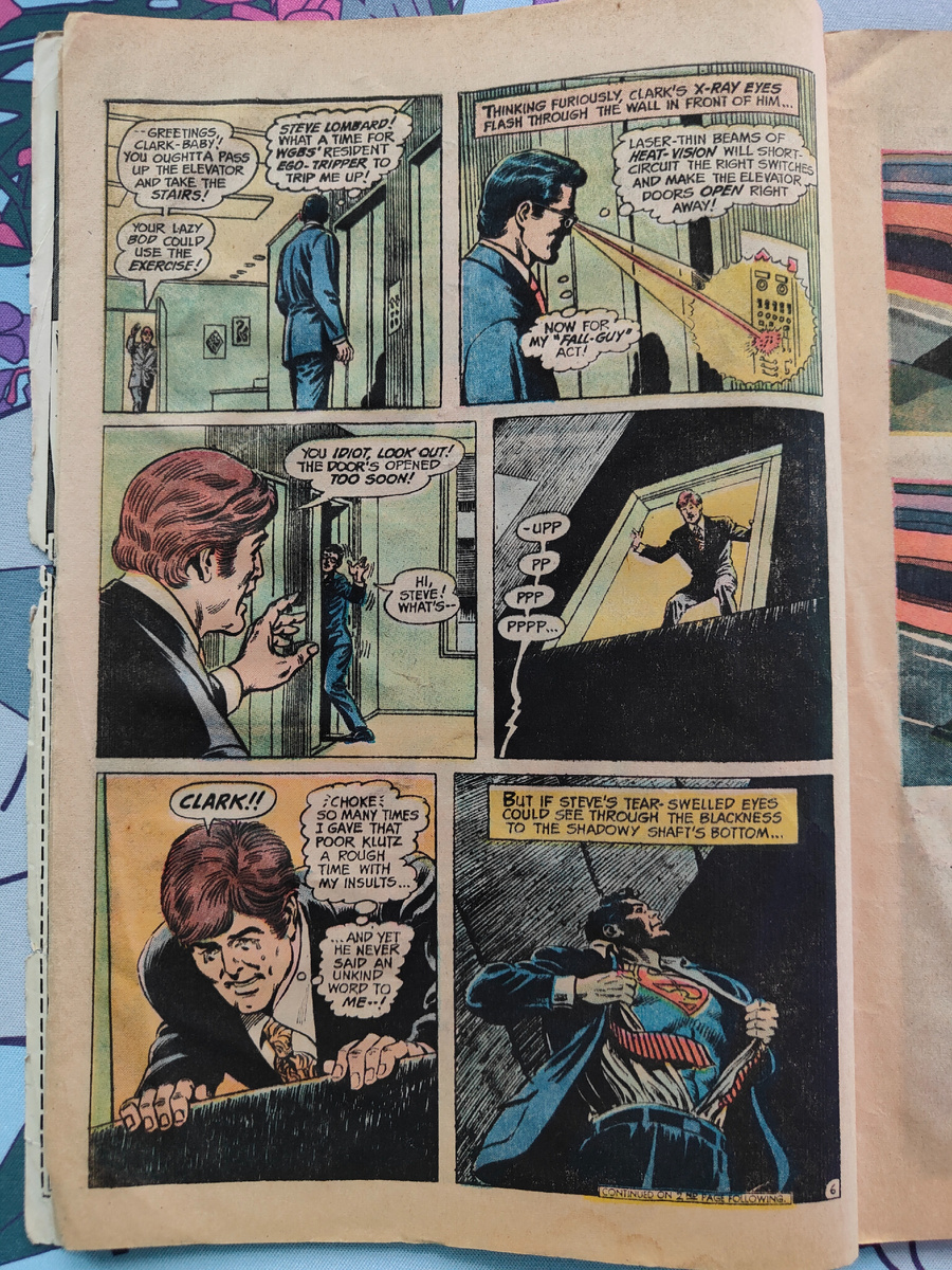 (И ведь мы все так когда-то спрашивали...) Вот и нет. Или, скажем честно — были для детей, а стали чем-то куда большим. Перед тобой — обложка комикса, которому в этом году исполняется 52 года. Потрёпанный, но гордый. Я нашла его случайно, на развале, и он будто прошептал: «Смотри, я ещё здесь». Комиксы — это не просто картинки с героями. Это зеркало времени, где даже Супермен может вдруг исчезнуть, а ребята на улице будут гадать — куда он делся? Почему его нет рядом? Почему мы перестали верить в героев? Супермен в этом выпуске — легенда, глядящая с плаката. Как будто он ушёл на пенсию, или пропал, или стал кем-то другим. Это один из тех выпусков, где герой не просто бьёт злодея, а сам становится вопросом. Вопросом к читателю. К тебе. К нам.