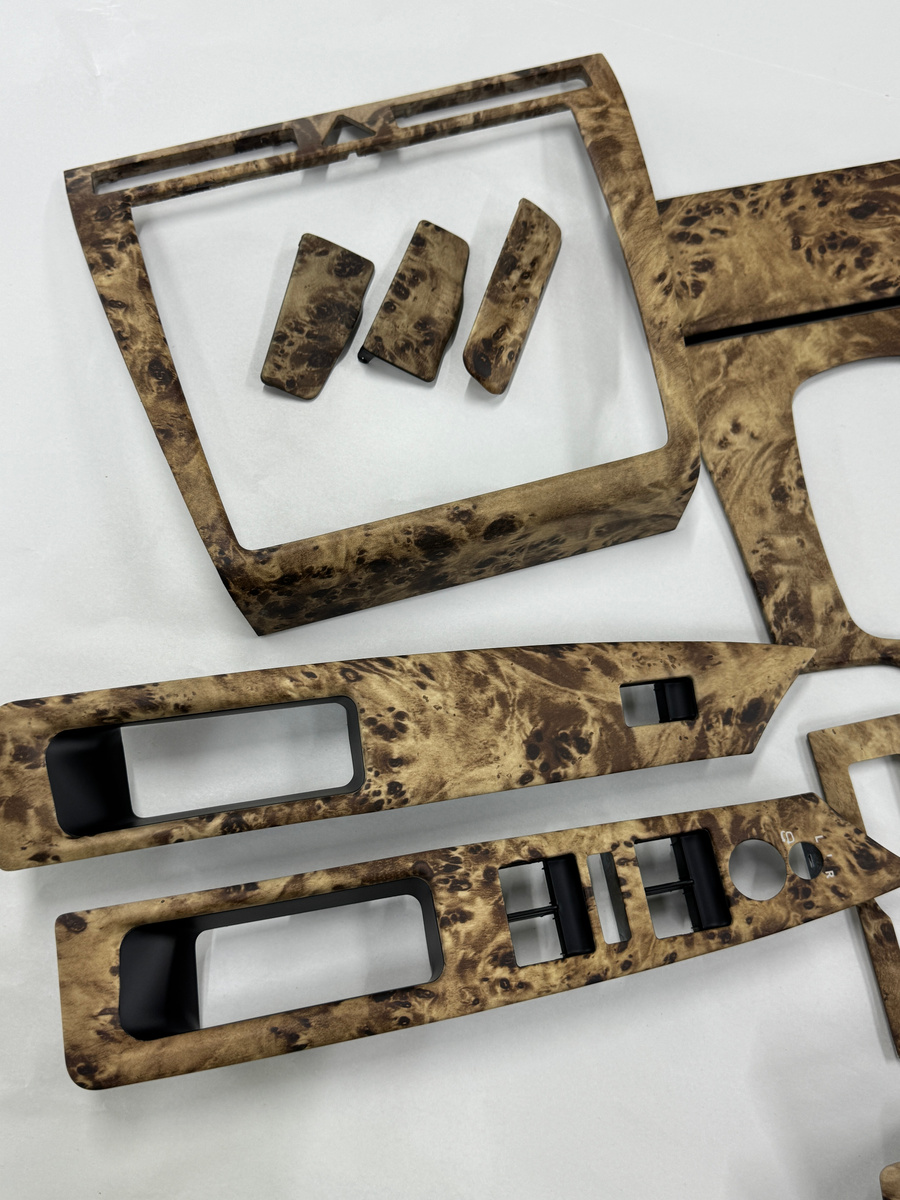 Готовый рисунок под матовым лаком напоминает структуру дерева, поэтому будет отлично смотреться в различных кожаных салонах.