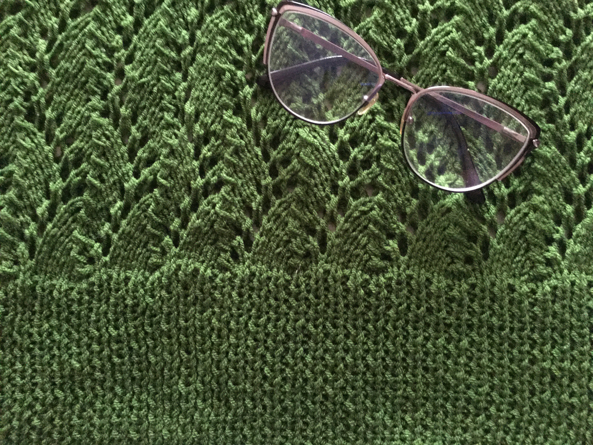 Дождливая погода в середине июня помогла мне закончить еще один увлекательный вязальный проект. Время, проведенное дома, а не даче не прошло даром: получилась летняя кофточка приятного сочного зеленого цвета с узором, который напомнил мне ветки ивы, наклонившейся у воды.