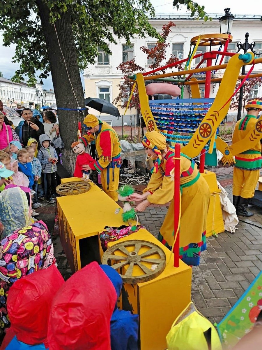 Дожди не помешали фестивалю уличных театров в Муроме 14 июня в Муроме прошел 4-й всероссийский фестиваль уличных театров. Его проведению не помешала даже непогода, хотя зрителям пришлось наблюдать за происходящим в дождевиках и под зонтами. Всего на фестивале выступили 32 коллектива из 17 городов. В Муром приехали артисты из Владимира, Москвы и Подмосковья, Санкт-Петербурга, Нижнего Новгорода, Орла, Тулы, Воронежа, Саратова, Череповца, Казани, Твери, Челябинска, Нового Уренгоя и даже Севастополя. Таким образом, география фестиваля охватывала территорию России от Крайнего Севера до самого юга. Фото - Муром360 Подписаться | Предложить новость