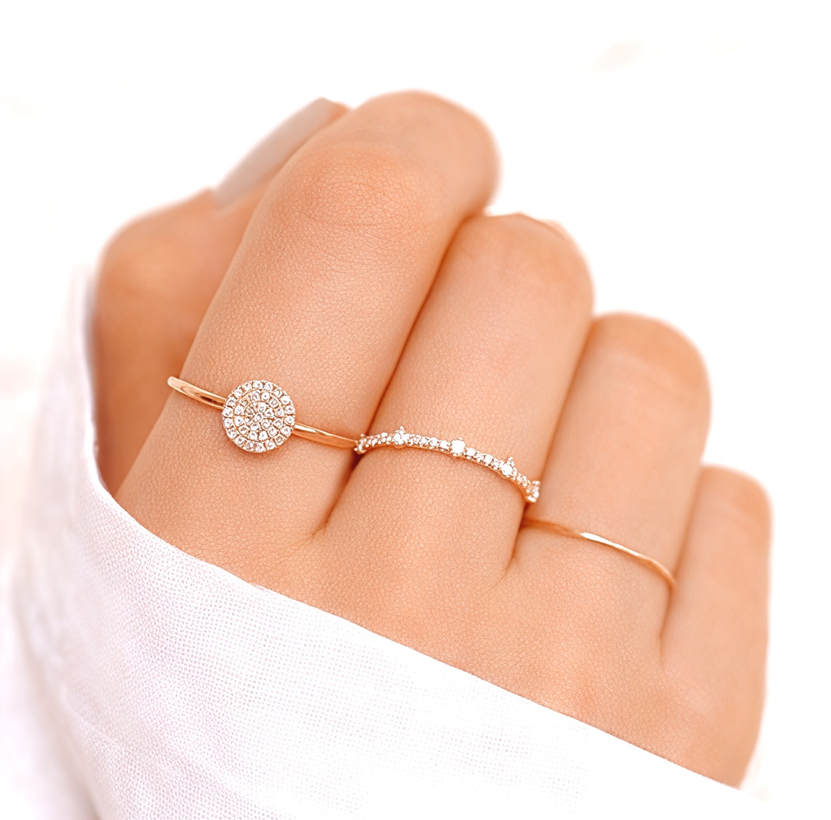 Возьмем простой пример. Тонкие золотистые кольца на разных пальцах выглядят свежо и современно. На девушке двадцати лет? Да. На женщине шестидесяти? Тоже да. Секрет в качестве металла и продуманности образа.