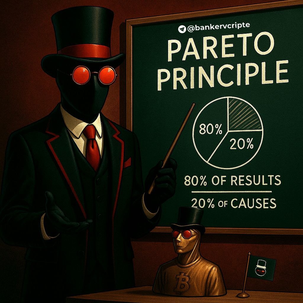 Закон Парето: как 20% действий приносят 80% результата в крипте и финансах 🔴Это не теория — это правило выживания. Закон Парето (80/20) не про гармонию. Он про жёсткую реальность: большинство результатов в жизни и финансах создаются меньшинством усилий. 🔖Суть: 80% последствий исходят из 20% причин. 🤩 20% монет в портфеле дают 80% роста 🤩 20% трейдов дают 80% профита 🤩 20% времени ты максимально продуктивен 🤩 20% криптопроектов выживут, остальные — шум ▫️Это — не цифры из воздуха. Это структурная закономерность, наблюдаемая в экономике, биологии, технологиях. 🤑Почему я использую Парето в крипте: 🤩 Фокус на высокоэффективное. Вместо гонки за 100 альтами — глубже изучаю 5. Лучше знать TON, BTC, ETH, чем «держать понемногу всего». 🤩 Обрезка шума. 80% инфы — не более чем хайп, драма, FOMO. Я отсекаю поток и оставляю только 20% источников: отчёты, ключевые инсайды, данные. 🤩 Оптимизация портфеля. Если 20% активов тянут всё вверх — я усиливаю эти позиции. Остальное — вон. Без