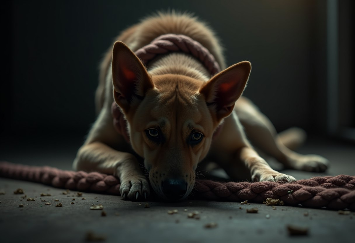Овчарка лежала в грязи, едва дыша. Цепь въелась в шею так глубоко, что образовалась открытая рана. Вторая собака — старая дворняжка — сидела, привязанная к столбу верёвкой. Такой же, как у Нади.