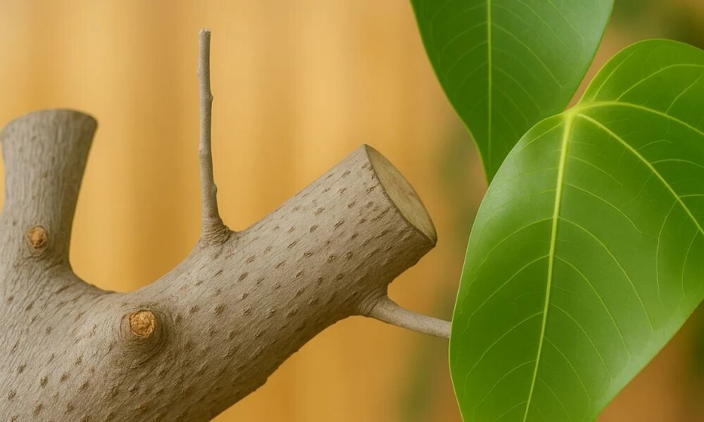 Точка роста фикуса — это часть, которая выступает из ствола или ветки. Если вы обрежете её, растение не станет выше, а новые побеги появятся из точек роста чуть ниже среза.
