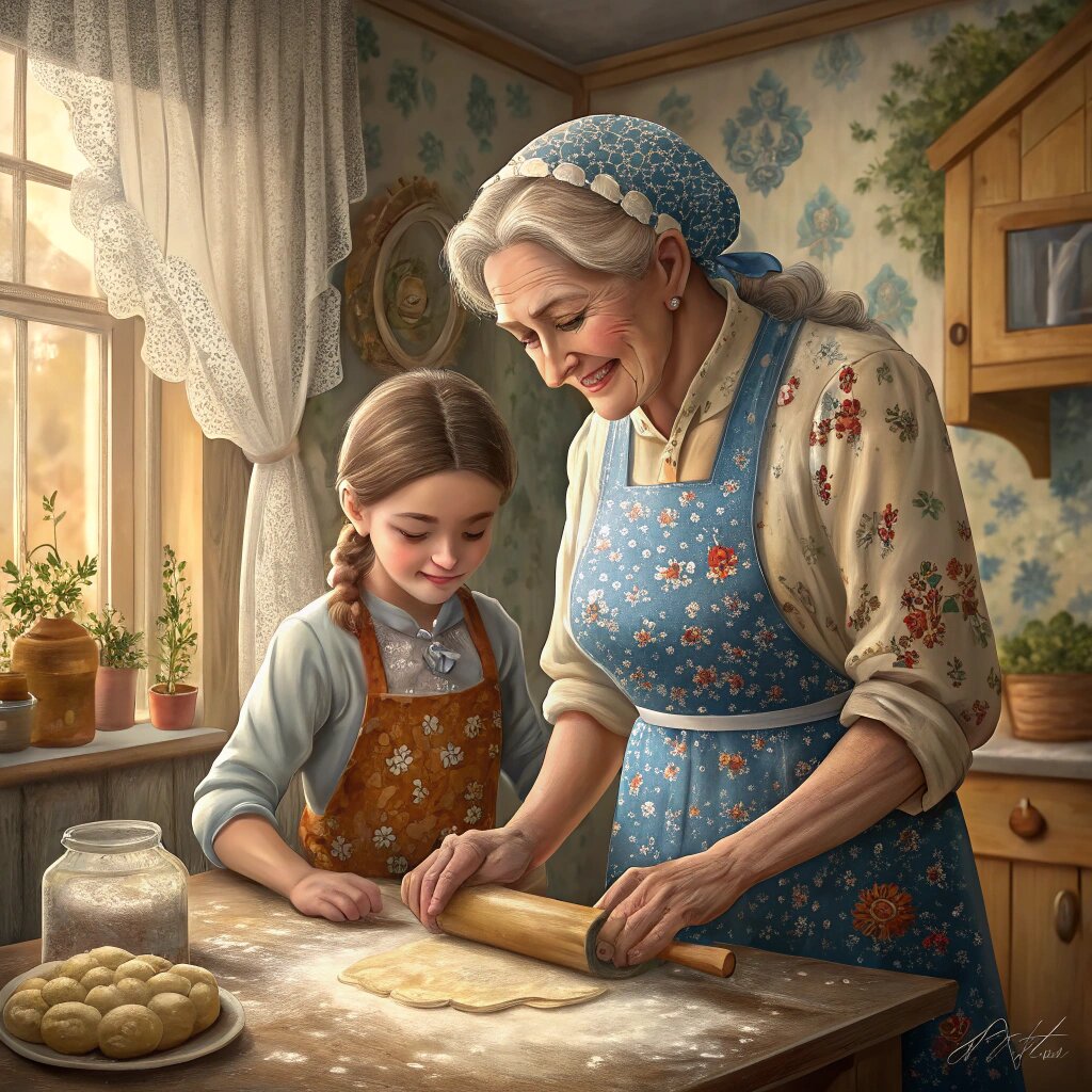В детстве у меня была бабушка, которая пахла хлебом. Я до сих пор помню этот родной, уютный запах. Свои первые пироги и витушки я делала под её чутким руководством. По субботам у нас всегда топилась баня — и обязательно пеклись пироги. Ничего на свете не было вкуснее этих бабушкиных пирогов. Так и закрепилась у меня в памяти эта связка: суббота — баня — пироги. А начинки были такие, какие сейчас мало кто использует. Мы пекли: — с ревенем, кисло-сладким, как сама весна; — с рисом и яйцом, золотистыми, как цыплята; — с пшённой кашей и шкварками, хрустящими на зубах; — со свежей земляникой и малиной в сезон сбора; — и обязательно — витушки с маком. Очень много витушек. Их я любила больше всего. Бабушка мыла руки, надевала выцветший фартук, подвязывала волосы платком — и начиналось волшебство. Она брала деревянную кадку (использовалась только для теста), наливала туда тёплое молоко, добавляла сахар и соль, просеивала муку. Потом — дрожжевую опару и начинала размешива