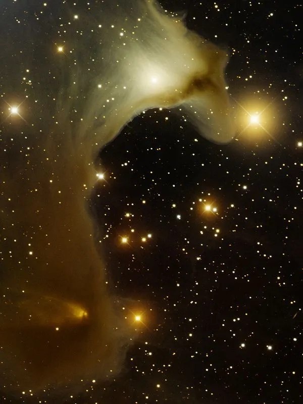 Sh2-136 Туманность Призрак Это завораживающе красивая отражательная туманность, расположенная примерно в 1470 световых годах от Земли в Цефее. Также называемая глобулой (CB230), она имеет размер около 2 световых лет в поперечнике и имеет несколько встроенных звезд, заставляющих ее жутко светиться.