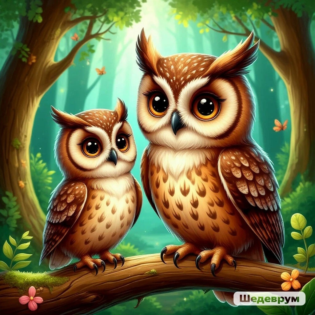 В маленьком лесу, на старом дубе жил Совёнок. Он был маленький и совсем не умел летать. Мама-сова каждый день покидала уютное дупло, чтобы добыть для сынишки еды. В это время Совёнок любил разглядывать веточки своего гнезда, каждая была уникальна и переплеталась друг с другом. Он целыми днями любовался ими, пока не запомнил всё до мелочей. Со временем, Совёнку надоело гнездо, он достаточно подрос и мог выглядывать из дупла, смотря на лесную чащу своими большими глазами. Мир вокруг него оказался таким огромными и интересным, что теперь Совёнку захотелось изучить и его, но он не мог, потому что не умел летать. В один из вечеров, когда шёл сильный дождь Мама-сова согревала своим теплом подросшего сынишку. Тогда-то Совёнок спросил: - Мама, а когда ты научишь меня летать? Мама-сова повернула голову и посмотрела очень внимательно на Совёнка, а затем заговорила своим томным голосом: - А почему ты захотел летать? - Я хочу увидеть каков наш лес, посмотреть всё, что в нём есть. - Это хорошее жел