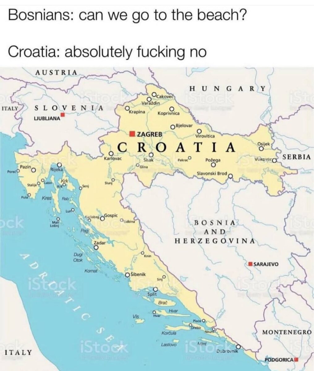 Перевод: Боснийцы: можно мы пойдём на пляж? Хорватия: без шансов.