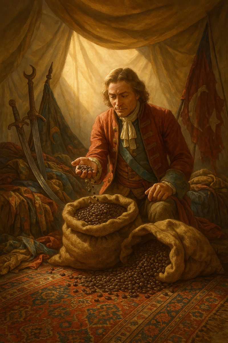 Но в лагере османов христиане находят странную добычу: мешки с зёрнами — черными, обжаренными, с терпким ароматом. Кто-то хотел выбросить их как бесполезный груз. Но один венский офицер остановил.