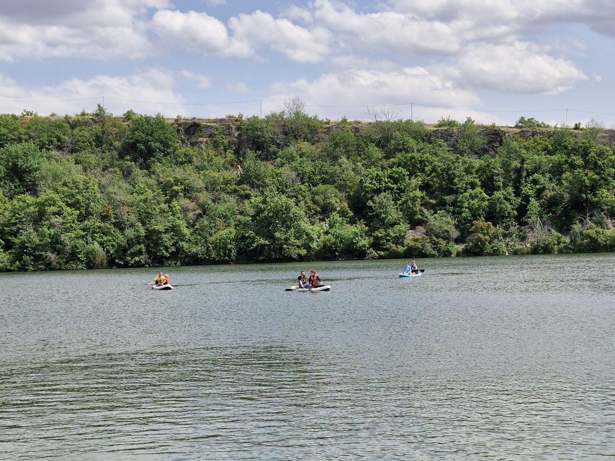 В пятницу 13го, несмотря на суеверия, провели мероприятие проекта Фонда президентских грантов "Водный мир 2" в хуторе Большая Федоровка. здесь есть большой живописный карьер, где в юности мы ловили рыбу и раков. После теоретического занятия, где мы изучили конструкцию САП-борда, электромотор, правила пользования ими и меры безопасности при выполнении сплавов на САПах, приступили к их подготовке для сплава. Трудились все 🙂 На фото два Сергея 🙂 Девушки надевают гидрокостюмы. Юная Полина к сплаву готова! Первый пошёл! Вначале мы поплавали без моторов. Ведь не все ранее были знакомы с САПами. На САПе можно плавать и вдвоём! После небольшой разминки установили моторы. Крепим пульт управления. Фотографии не передадут скорость передвижения на САПе с мотором, поэтому в следующий раз мы прикрепим на нос САП-борда экшн-камеру. Занятия прошли успешно, освоили СА-борд и передвижение на нём с мотором. Нам усердно помогали советник директора по воспитанию и взаимодействию с детскими общественны