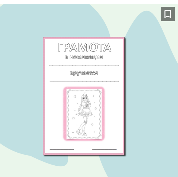 Грамота-раскраска для девочки, чёрно-белая, шаблон номинации